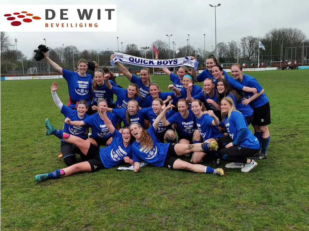 Tijdens het sponsor-lustrum van De Wit Beveiliging zijn de VR 1 van Quick Boys al heel vroeg in het seizoen ongeslagen kampioen geworden.
